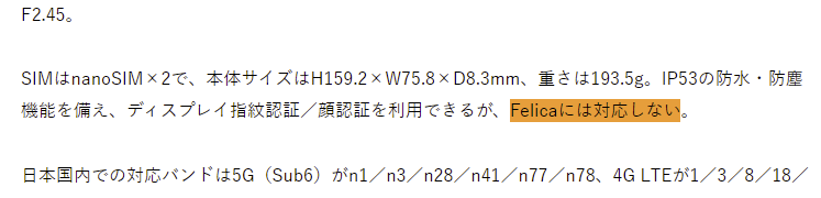 NFCには対応していますが、日本版でもFeliCaは搭載しないようです。残念!