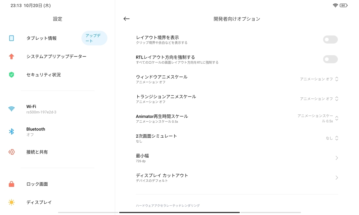 設定→MIUIバージョンを連打する→ 追加設定→開発者向けオプション