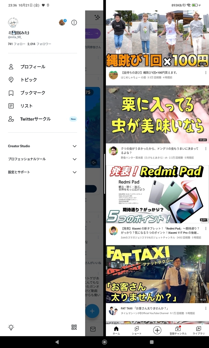 マルチタスクからの分割は不可、ボタンショートカットでは設定できなかった。