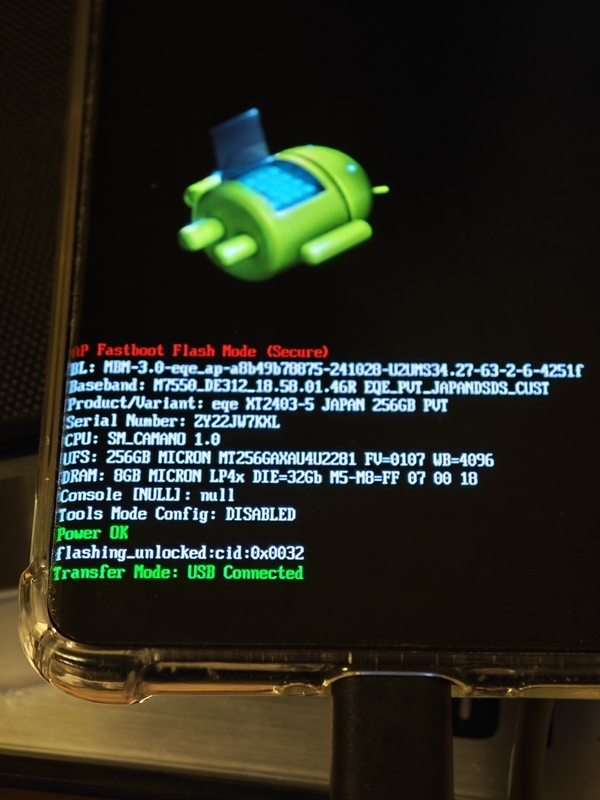 そのままグロロムをFlashしようとしてもFastbootモード接続時に機種チェックが入り異なる機種の場合に弾かれる仕様となっているので小細工します。