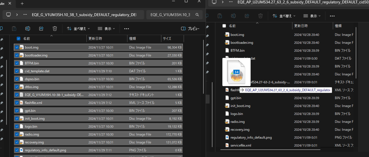 を開きます。EQE_Gのフォルダの中をEQE_APに丸ごと移します。