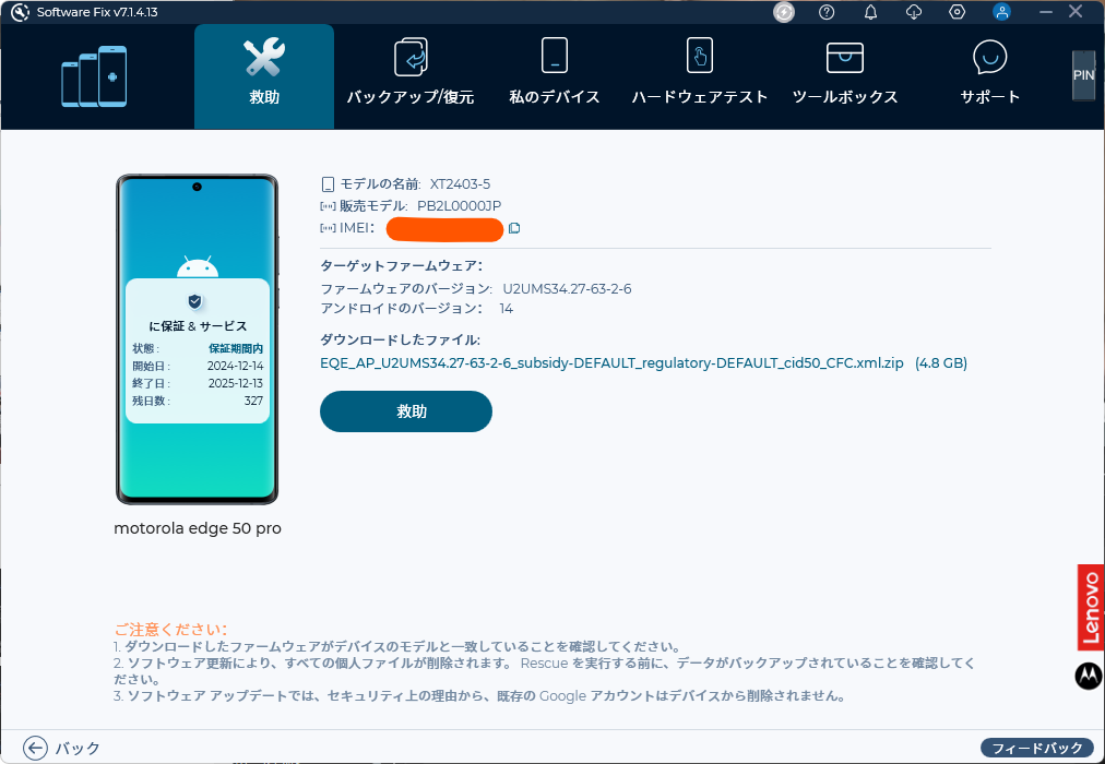 タブレット等でできてたモデル選択からDLはスマホではできなくなっているので、どこかからIMEIを探して入手する。